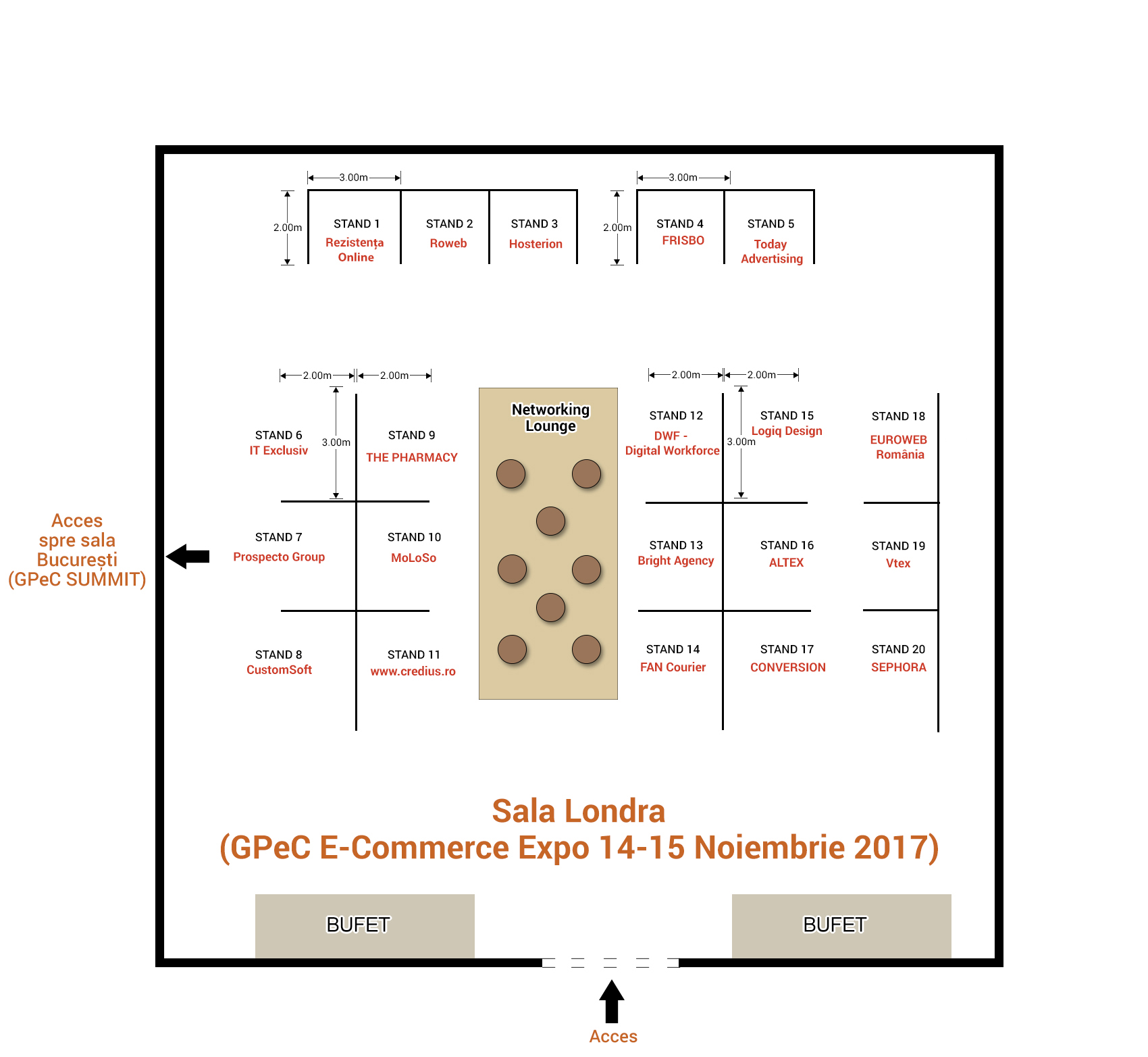 Rezervă-ți standul la GPeC E-Commerce Expo, scriindu-ne un e-mail la contact [@] gpec.ro cu subiectul “Stand GPeC E-Commerce Expo 14-15 Noiembrie”, în care ne oferi detalii despre produsul/serviciul dezvoltat, suprafața dorită pentru stand (4 sau 6 mp) și datele necesare pentru facturare (denumire firmă, adresă poștală sediu social, CIF, J, IBAN). Deadline: 6 Noiembrie 2017, inclusiv.